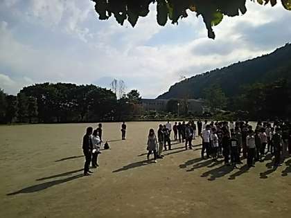 予定通りの時間に河口湖学園に到着しました。全員元気です。園庭で開園式を行った後、部屋に入ります。