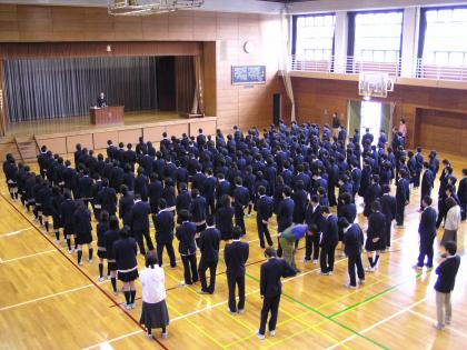このことは、1,2年生についても言えることです。元気で明るいあいさつ、会話は皆さん一人一人に元気を与えます。元気がみなぎり、主体的に友達と協力できる学校、皆さんが楽しいと思える学校でありたいと思います。本校の年間の取組にあいさつがありますが、それもそうした意義を踏まえたものです。