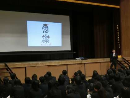 1月8日(火)の始業式後、人格の完成の講話が行われました。今月のテーマは「感謝」です。