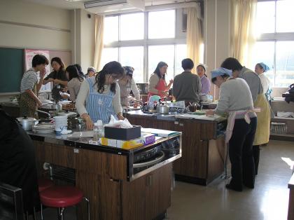 本校、根舛セツ子養護教諭が講師となり「早起き・早寝・朝ごはん〜思春期の子育て〜」というテーマで芦花小中学校の「早寝・早起き・朝ごはん」のアンケート調査結果や保健室の来室状況を踏まえて、思春期の子育てについて話がありました。食は心を育てるという話などを受け、中学生の朝食について和食3種類、洋食1種類、パン食2種類をつくり、互いに講評しました。集まった保護者の方からは、子どものための調理の学習になるなどの声も出ていました。