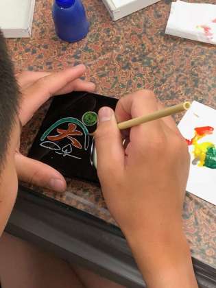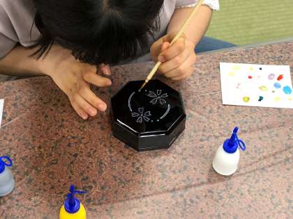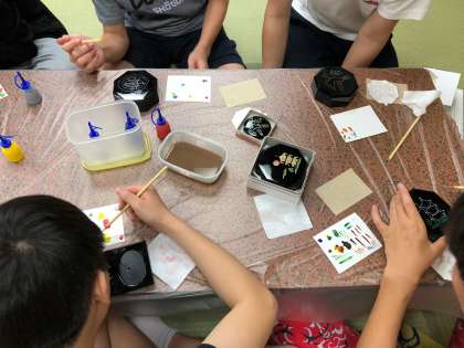 初日夜の取り組みは、加飾体験です。それぞれ集中して色付けをしています。