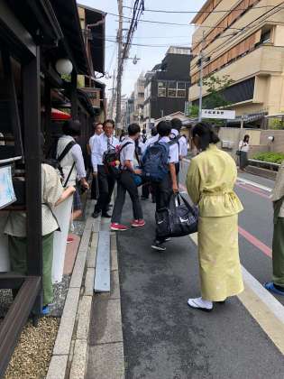 最終日は、タクシーによる京都市内班行動です。3日間お世話になった宿舎の方々に見送られながらの出発です。
