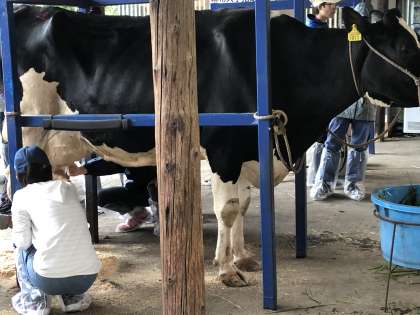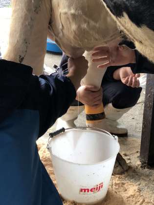 乳搾り体験の様子です。