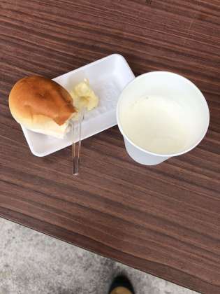 作ったバターをパンにつけて、牛乳と一緒に美味しくいただきました。