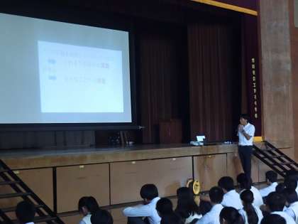 私たちは日頃から1次元アリのように、「前後にしか進めない」という常識にとらわれてしまい、その殻を破ることには抵抗を覚えます。しかし、その常識を破るために勇気を出したものが進化を許されるのです。様々なことに興味をもち、それに取り組んでみることで、自分自身を高めることにつなげようという話でした。