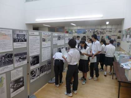 世田谷区立平和資料館の巡回展示が芦花中に来ました(9月25日まで)。