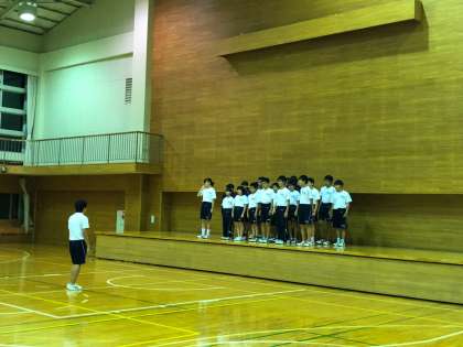 4校か集まって行われた、夜の学級紹介では、「君に会えて」の合唱を披露しました。