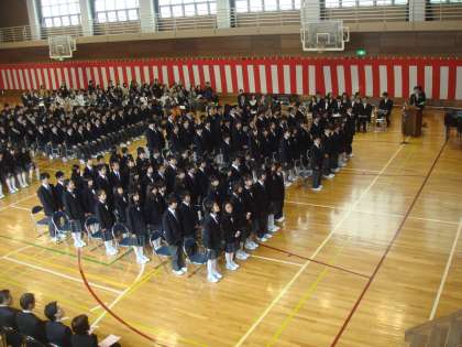 新しい制服に身を包み男子43名女子46名計89名の入学が認められました。