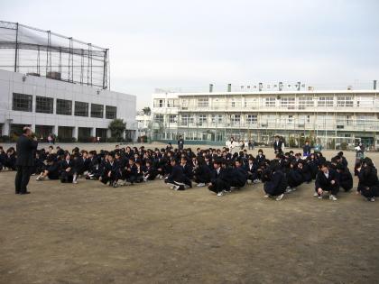12月17日(月)に全校避難訓練を実施しました。今回は、授業中に避難するのではなく、昼休みに避難するという想定で行われました。休み時間なので、それぞれの場所から校庭に避難しましたが、大きな混乱もなく無事に終了しました。