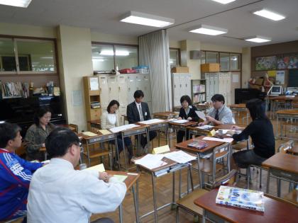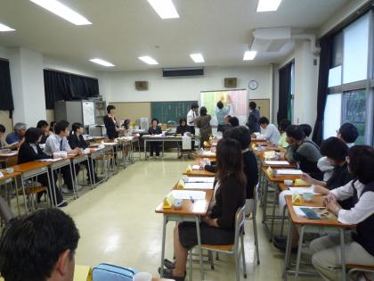 10月15日(水)小中一貫型の教育の研究授業が、芦花小学校で行われました。今回は小学二年生の学級活動で『グループワークを取り入れた人間関係つくり』と題して、班毎に廊下にある絵を、一人ずつ見に行き記憶し、同じように描いていく『人間カラーコピー』というゲームの中から、ルールを守り、班員が協力する大切さを学ぶ授業でした。この後、芦花中にてグループごとに分かれて協議をし、全体協議に移りました。講師はカウンセリングルーム「プリムラ」代表の袰岩(ほろいわ)奈々先生で、アーサション(さわやかな自己表現)の視点からグループワーク・トレーニングについての手法を学びました。