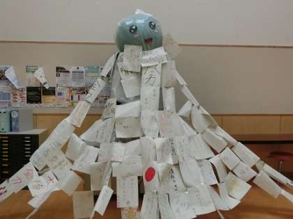 写真は、ソーシャルディスタンス大縄と、9日(金)に3年生が学年全員で作成した「特大てるちゃん」です。土曜日には間に合いませんでしたが、今日はてるちゃん効果で、午後は気持ちの良い秋晴れでした。