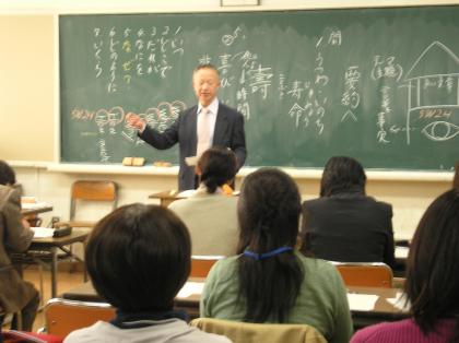 11月13日(木)第3回家庭教育学級が開催されました。今年度の家庭教育学級のコンセプトは、体験です。給食試食会、ストレッチ、今回は、教科・日本語哲学の授業でした。芦花中学校で実際に教えてくださっている重松眞尋先生に授業をしていただきました。哲学の授業の始まりから、「人間ってすごい」(日野原重明)を読み、「他人に使う時間」を考える授業でした。「指されたらどうしよう」と緊張がみなぎる中、「むずかしい」のは、一つの答えがないからだと思いいつつ、ノートに書いたり、プリントの穴埋めに必死になったり、生徒になる体験をしました。昔経験した授業とは異なる「考える」授業を受けました。また、今回は、閉級式も兼ねており、社会教育指導員の箕輪様から、「工夫された家庭教育学級であった」とご挨拶をいただきました。