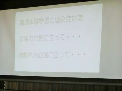 これまで第2学年では、実際に仕事をすることを通じて学ぶ「職場体験」を行ってきました。しかし、現在や今後の社会情勢を踏まえると、当初予定していた七月に例年通りに「職場体験」を実施することは難しく、延期か体験によらない内容に変更するか検討を行っています。