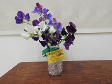 スイートピーは園芸部が育てたものです。I組の園芸部2人が学級にプレゼントしてくれました。廊下に飾っています。