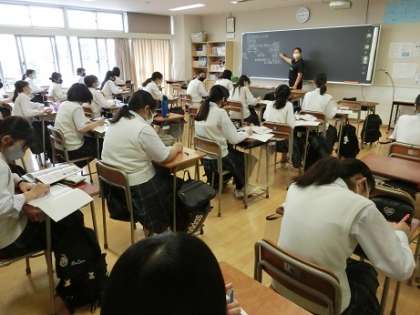 英語の授業では毎回歌を歌っています。今月は“Tie a Yellow Ribbon Round the Ole Oak Tree”を歌っています。1973年にリリースされた曲ですが、CMなどでも使われており、親しみのある曲です。マスク越しではありますが、生徒たちはいつも楽しそうに歌をうたっています。