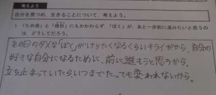 生徒一人一人が日常を振り返り、歌の歌詞の一部を発表、共有したことで、それぞれが自らを励ます曲を新たに見つけたり、考えを広げられたりしていました。