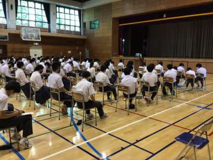 今日は土曜授業でした。3時間目には卒業生から高校受験の体験を聞く「卒業生の話を聞く会」がありました。