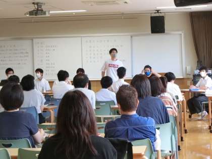 最近の様子、その学校を決めた理由など、について話してくれました。3年生だけでなく生徒全員が真剣に聞いていました。