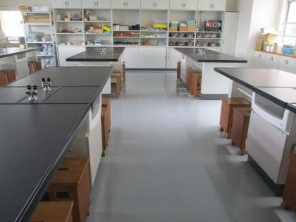 久しぶりに理科室に入ってみたら、床がピカピカになっていました。びっくりです。