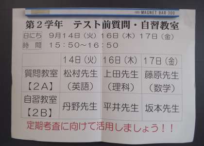 テスト前質問・自習教室