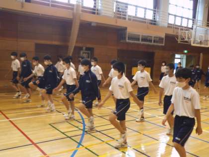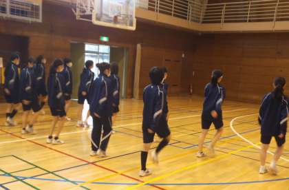 体育館で行進の練習等をしました。