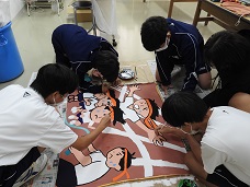 いよいよ来週の土曜日が体育祭となりました。整列練習、バトンパス練習、クラス旗作りと大詰めです。整列練習では、2列縦隊に素早く並べるよう、体育係を中心に声を掛け合っています。バトンパス練習では、上手に繋げるよう、タブレットで撮影しながら確認しています。クラス旗作りでは、皆で作業を分担し、3年生を中心に仕上げの段階に入っています。デザインも1から考え、今年も素敵なクラス旗に仕上がりそうです。当日ぜひご覧ください!!