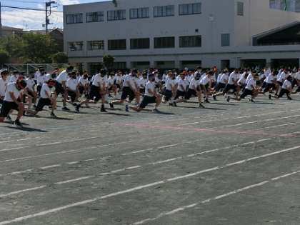 東京2020オリンピック・パラリンピックのテーマ曲だった「カイト」に合わせて全校生徒でストレッチをしました。