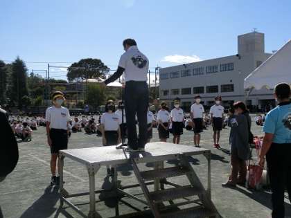 秋晴れの空の下、全力で走って跳んで、大成功の行事となりました。生徒一人一人の心に達成感や充実感があふれていることと思います。