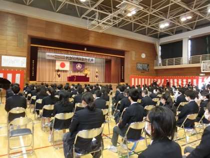 前日の午後に、2年生が会場を作りました。小学校中学校合わせて350個のいすをきれいにそろえて並べました。コロナ対策を意識して、普段よりも前後の間隔を広くとりました。また、背の高い選抜男子が紅白幕を整えました。