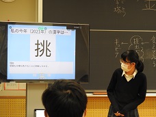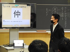 自分の今年1年間を表す漢字一文字を考え、発表しました。それぞれの理由が個性的で素敵な発表でした。タブレットの活用も上手になっています。