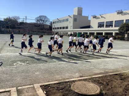 校庭を周回する長距離走を行なっています。