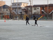 練習時間を確保するため、2班に分かれて整備とトレーニングを行っています。