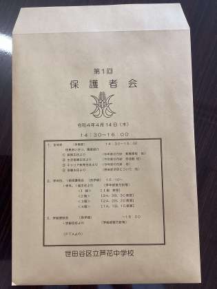 生徒に資料が入った封筒を配布しています。ご確認のほどよろしくお願いいたします。