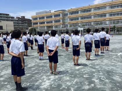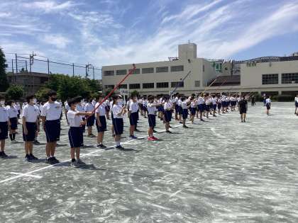 初めての全校練習。整列・入場行進に集中して取り組んでいました。これから練習をさらに重ねて、当日には、美しい整列・行進を見せられるように頑張っています。