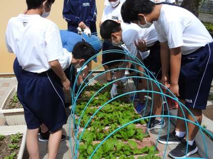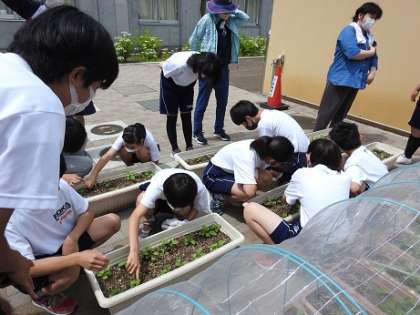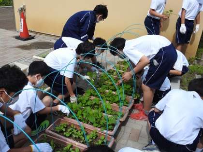 今日の技術では間引き作業を行いました。幼虫がおいしい葉っぱをたくさん食べていて、途中から間引きよりも幼虫除去作業がメインになっていました。