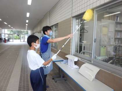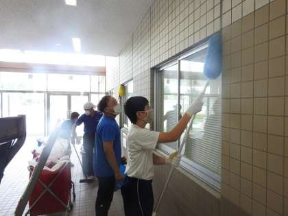 写真は株式会社ソシオで清掃業務の体験の様子です。