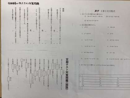 独自の対策問題を作成し第3学年生徒全員に配布しています。