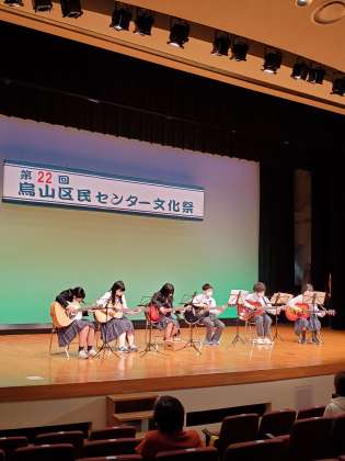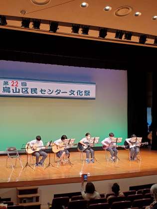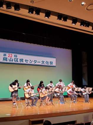 烏山区民センター文化祭でアコースティックギター部が演奏を披露しました。