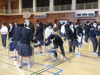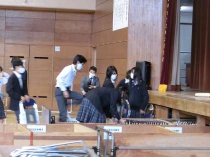 学芸発表会が終了し、会場の片付けは2年生が担当しました。