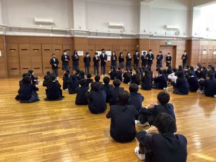 学級委員会が企画運営する学年朝会第2回目が行われました。今回は、学級委員からの話、校外学習実行委員の紹介がありました。