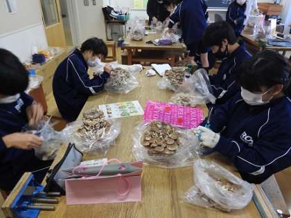 技術でしいたけの収穫をしました。たくさん穫れてみんな喜んでいました。