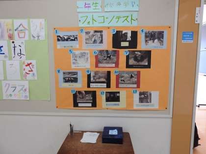 多目的室には学級紹介動画、廊下には行事のかべ新聞や校外学習のフォトコンテスト等、掲示しています。お子様の日頃の成果をご覧ください。また、フォトコンテストの投票にもご協力お願い致します。