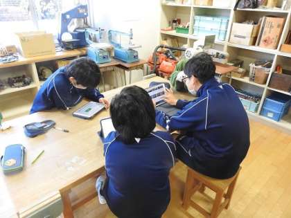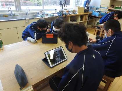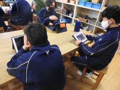 写真は技術の授業です。次は金工作品で鋳造キーホルダーに取り組みます。