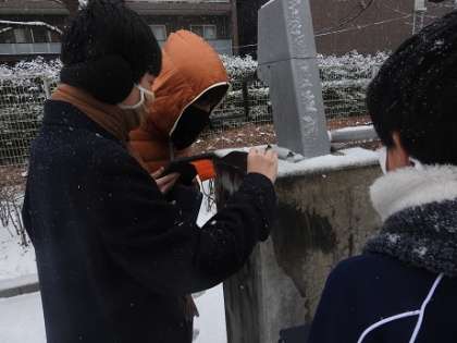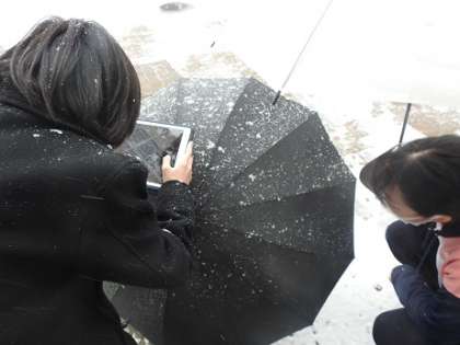 その後、今日の天候を生かして、雪の結晶の撮影にいきました。みんなすごく楽しそうです。