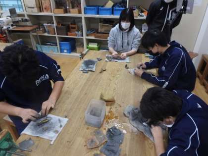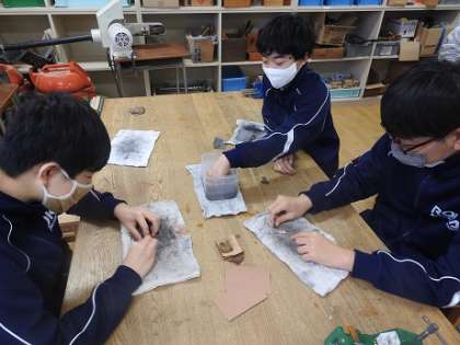 今日も鋳造キーホルダーを磨く作業を頑張っています!!