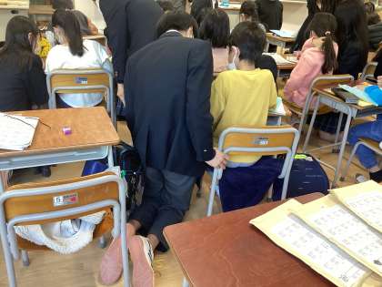 3年B組の生徒が小学校の「寺子屋」へ行き、