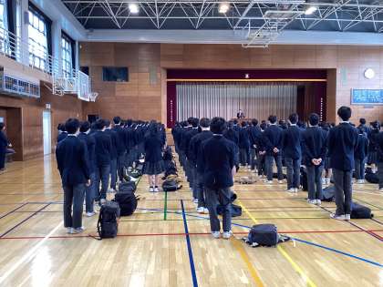 校長先生からは、新しい学年としての責任をしっかり果たせるようにしていきましょうとお話がありました。生徒会代表からは、3年生としての抱負や各学年に向けての話があり、新しい学年の節目をしっかり頑張っていこうという意気込みが感じられました。