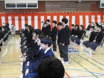 I組の新入生の皆さん、ご入学おめでとうございます。皆さんと会える日を心待ちにしていました。これから3年間、みんなで力を合わせて楽しみながら学びの多い中学校生活にしましょう。