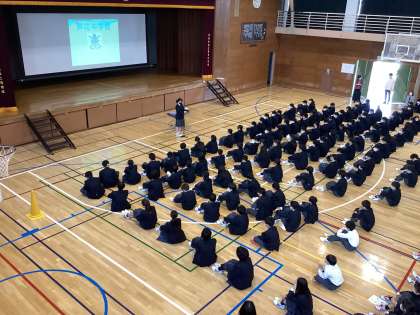生徒会から学校生活の紹介やアドバイス、各委員会の仕事内容の紹介、部活動の紹介がありました。