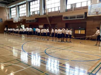 ABC組が集まり、体育祭の種目、大縄跳びの練習をしました。